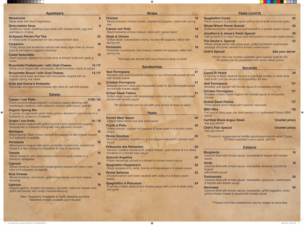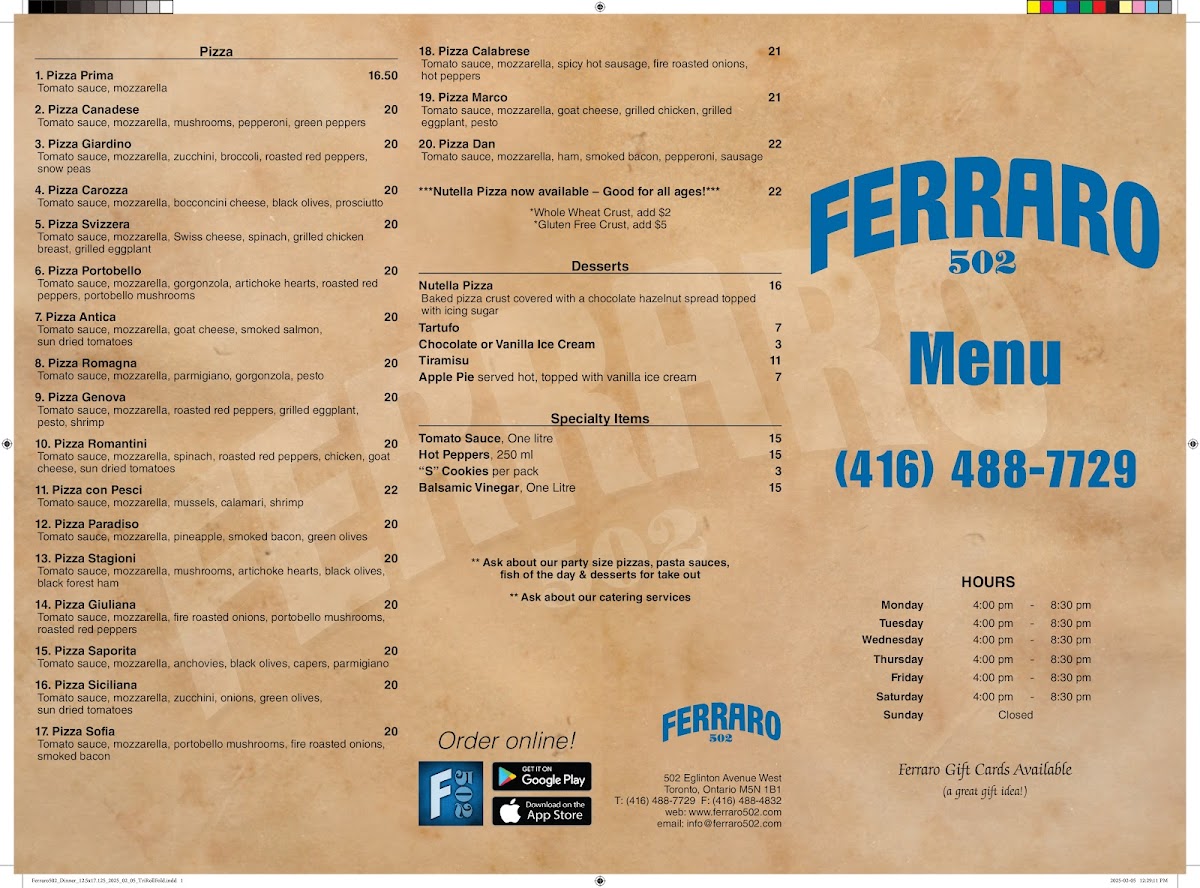 Excellent food and great portions. Prices very reasonable and staff were super friendly. Everything was delicious. The pizzas were terrific, the pasta sauces very rich and flavourful, the mussels and sauce was super tasty.